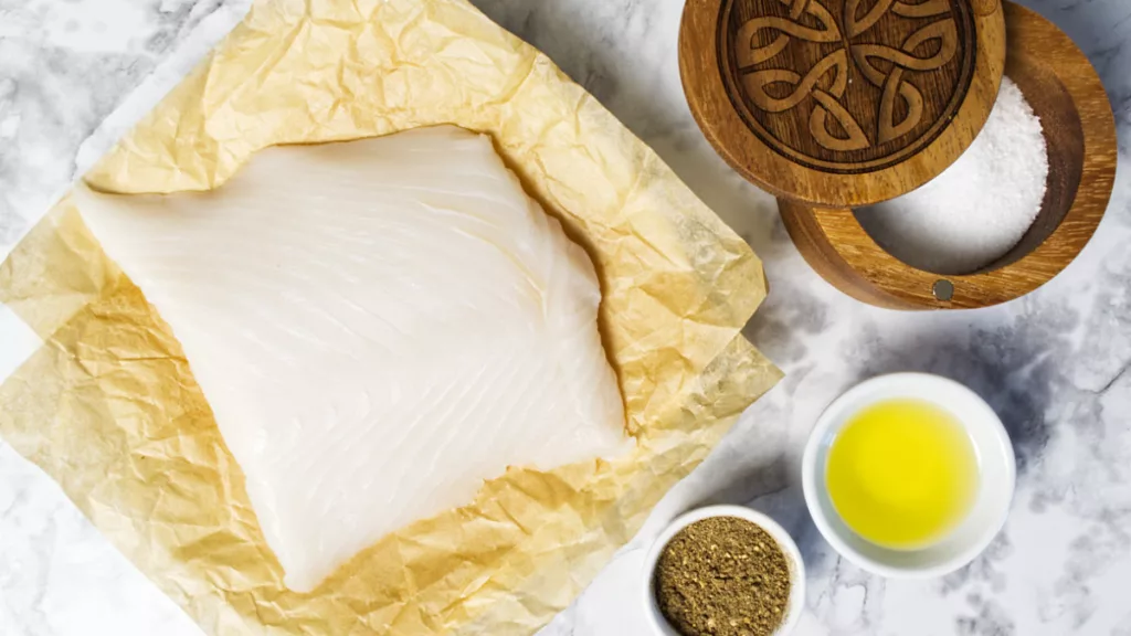 - Halibut: fresh or defrosted, wild if possible, skinless and boneless.