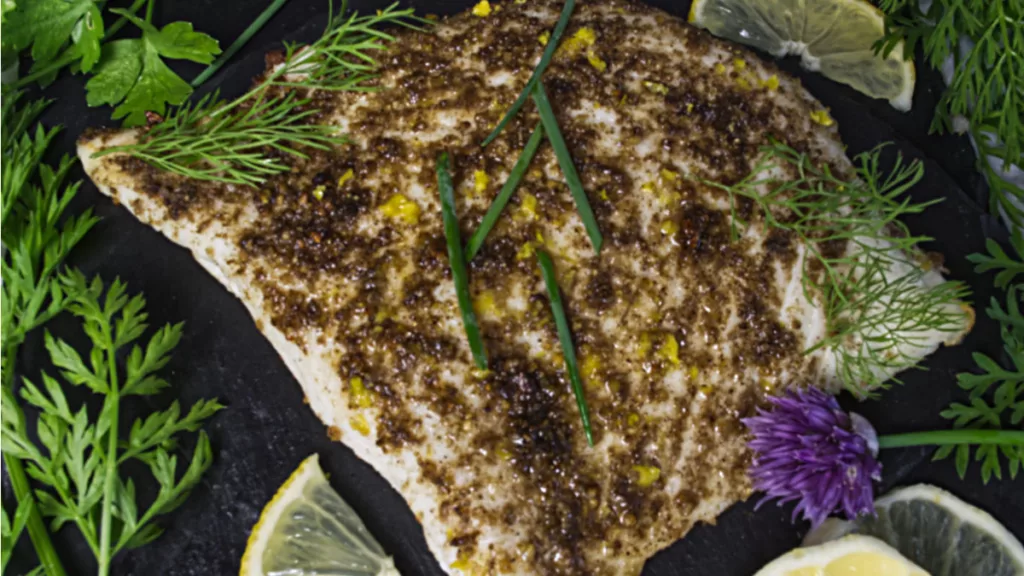 Halibut is a type of flatfish found in the cold oceanic waters of the North Atlantic and North Pacific. It’s a large fish in size and weight that requires deep sea fishing techniques to catch it. This chap will not win any beauty contests! Halibuts’ bodies are flattened and mis-shapen. Both eyes on one side of their head with their mouth extending to the other side. Good thing we don’t have to look at them while we eat!