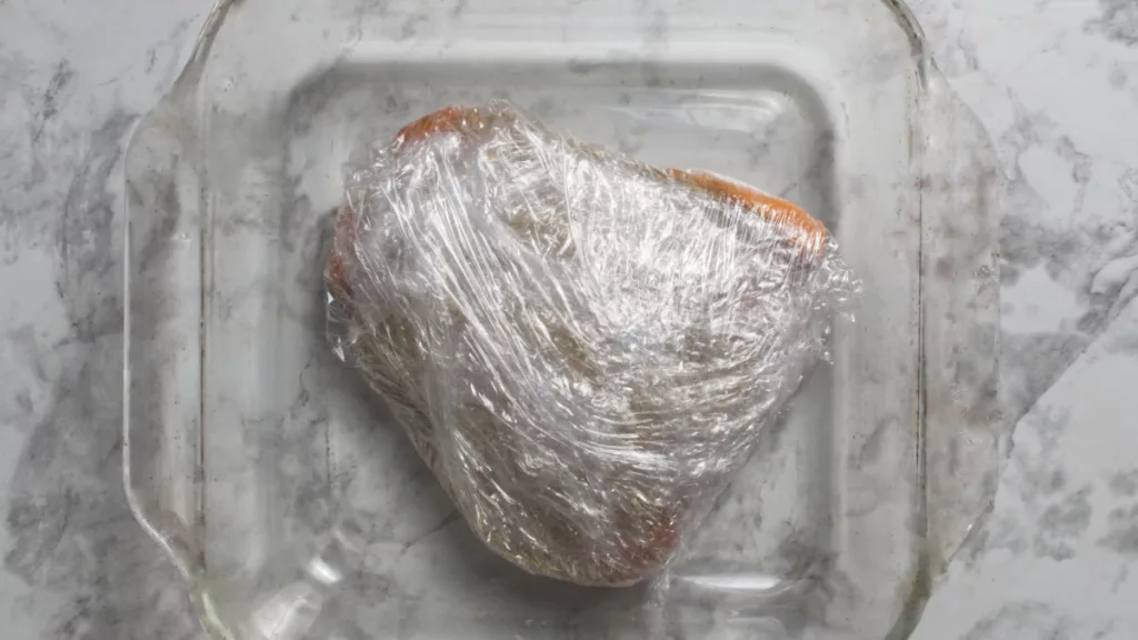 - Wrap the Salmon in plastic wrap and refrigerate for 12 – 24 hours to cure.
