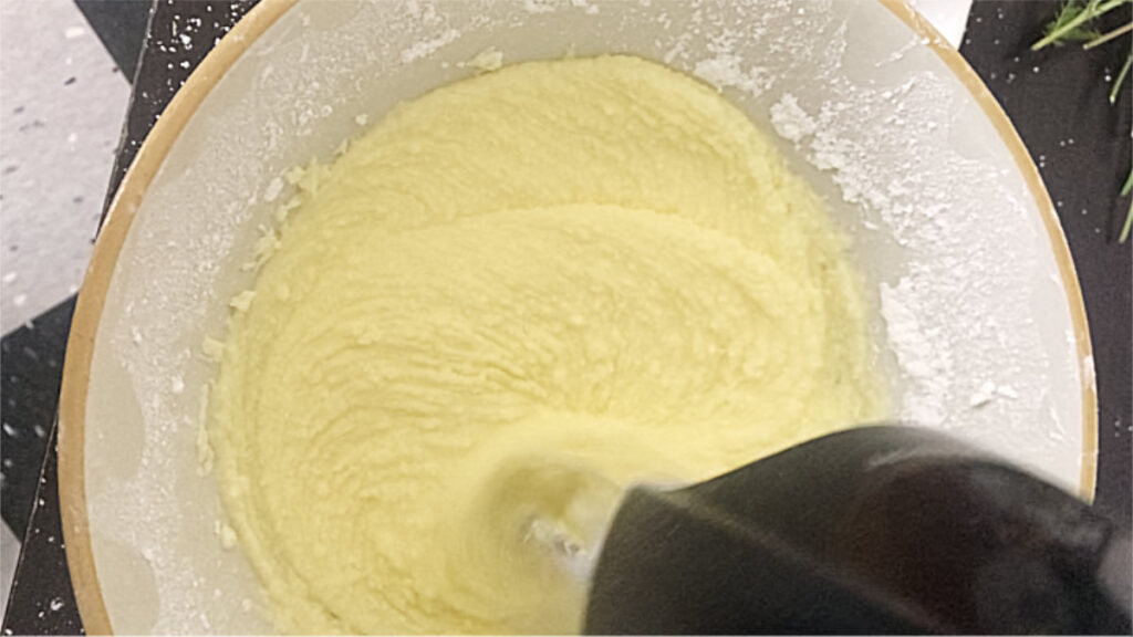 - Add the mascarpone cheese and blend with a hand mixer on a slow speed.