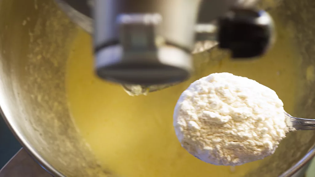 - Sift the flour, salt, and baking soda. Add the flour mixture, one tablespoon at a time.