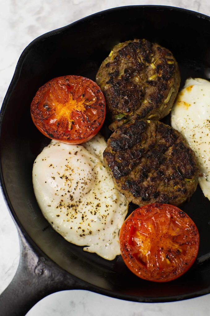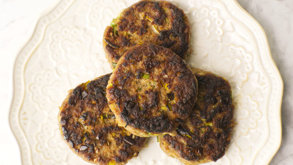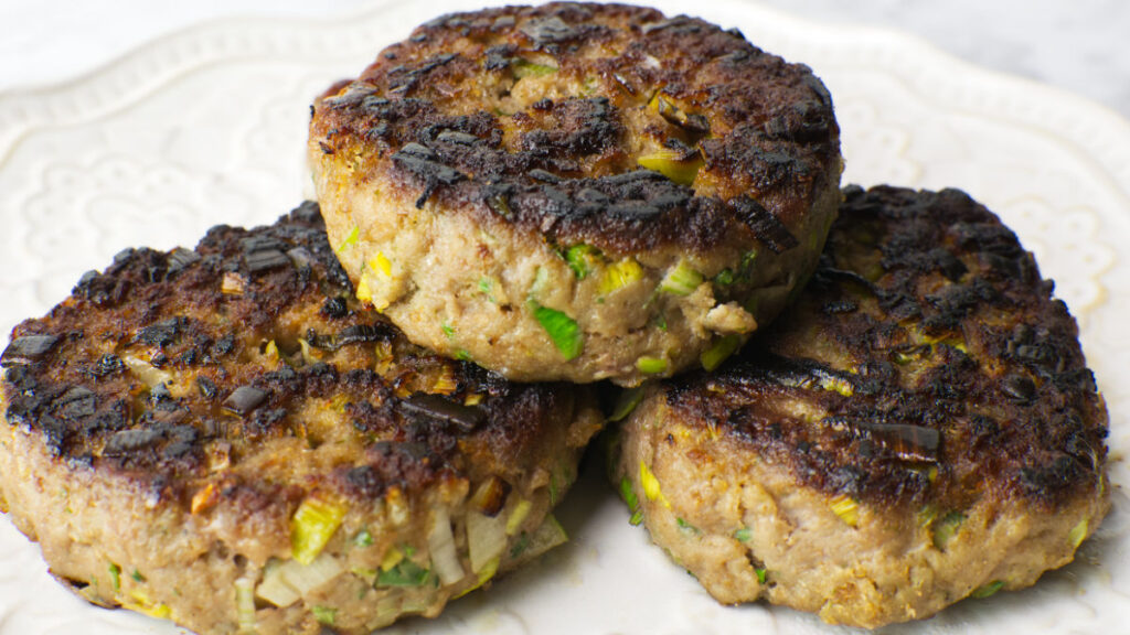 This is the Best Vegetable Roll recipe this side of the Atlantic (I’m based in the U.S.)! This seasoned sausage is bursting with flavor supplied by leeks, parsley, and natural flavorings added to grass fed beef. Traditionally, the sausage meat is stuffed into a clear plastic sleeve (plastic cling wrap can also be used). It is then sliced into discs before pan frying. Remove plastic wrap prior to cooking.